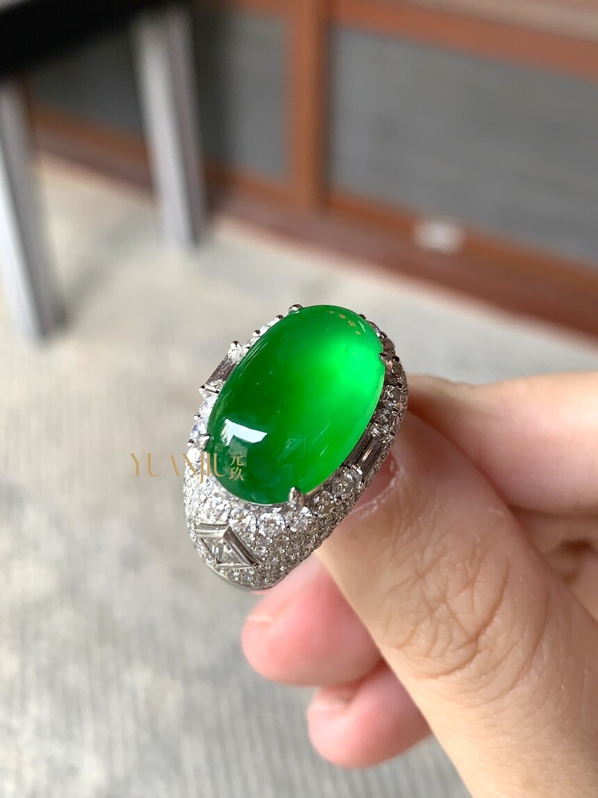 【收藏级冰阳绿马鞍戒指】【166187/E7LKSD】