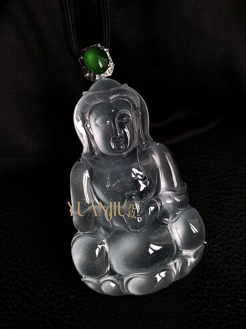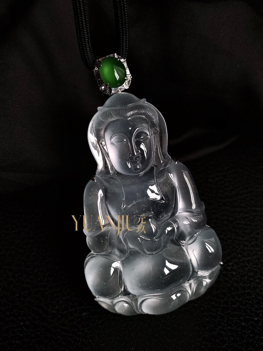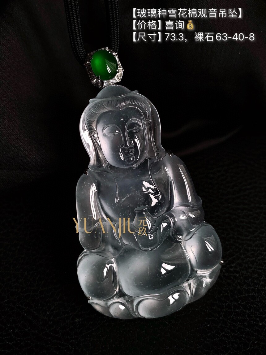 【玻璃种雪花棉观音吊坠】【167305/6FMRNC】