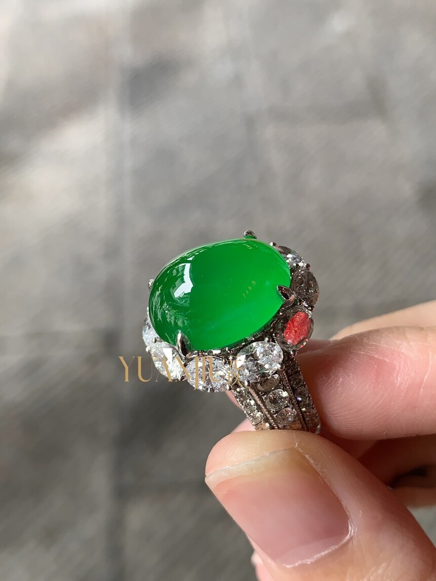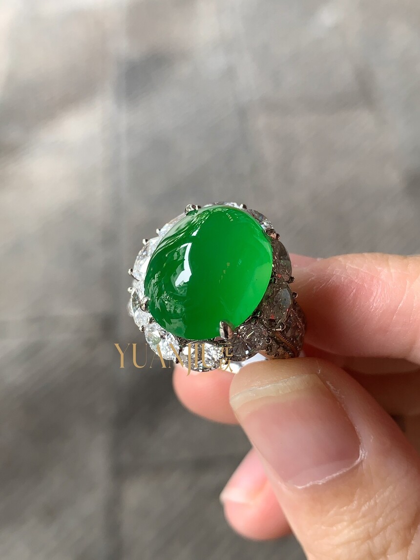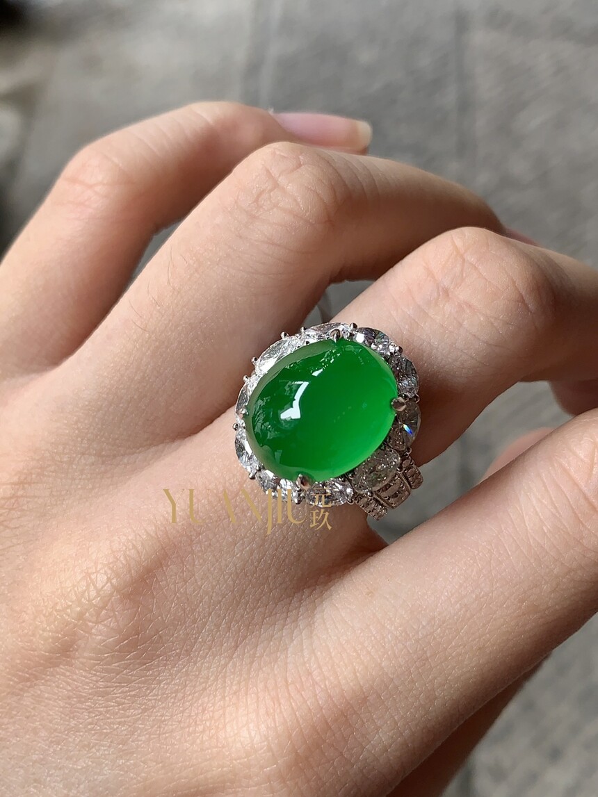 【收藏级冰阳绿蛋面戒指】【167621/21KMPD】