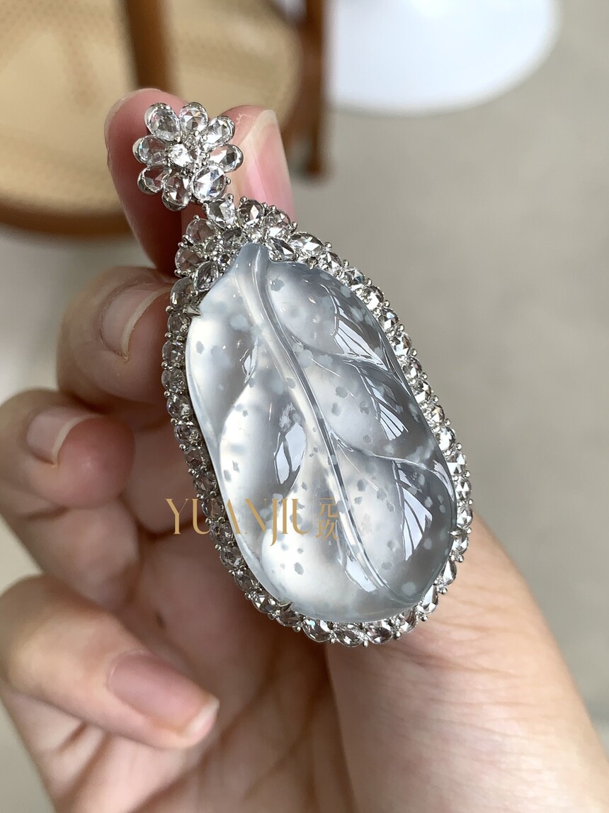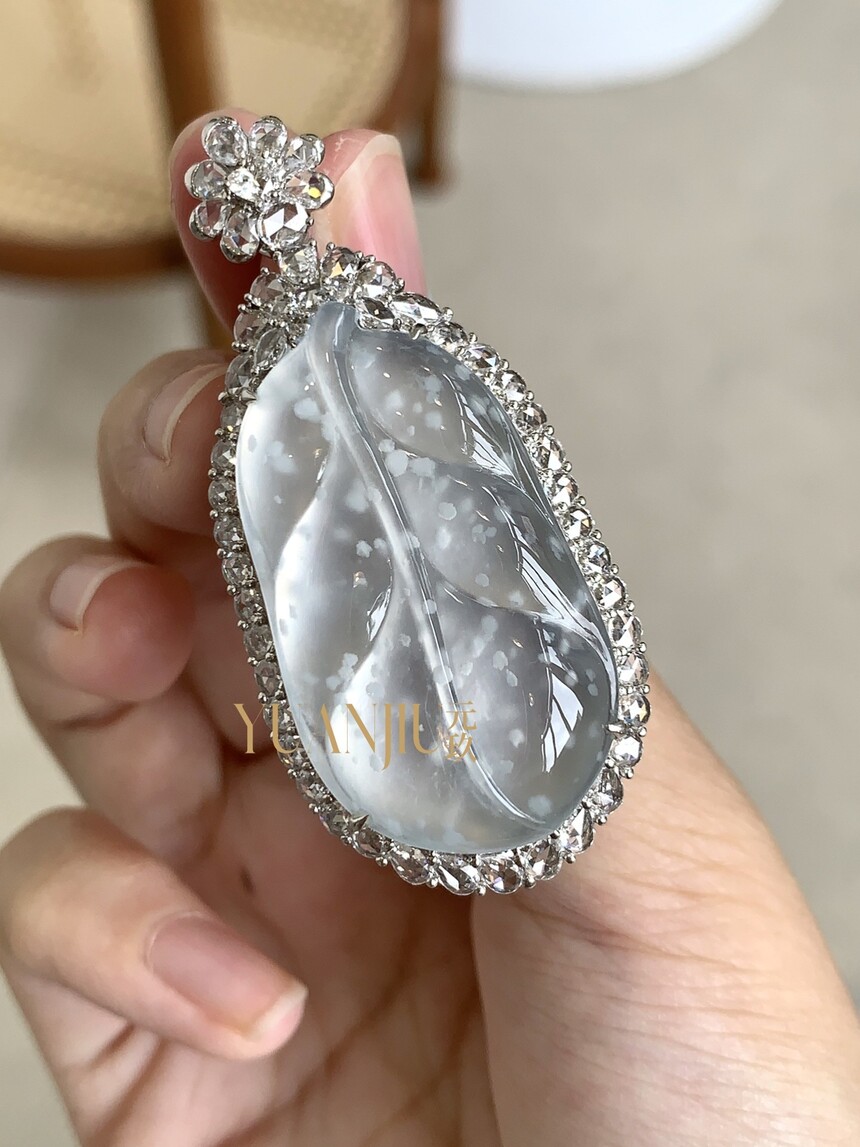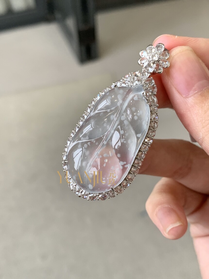 【玻璃种雪花棉叶子吊坠】【167405/8CKMPC】