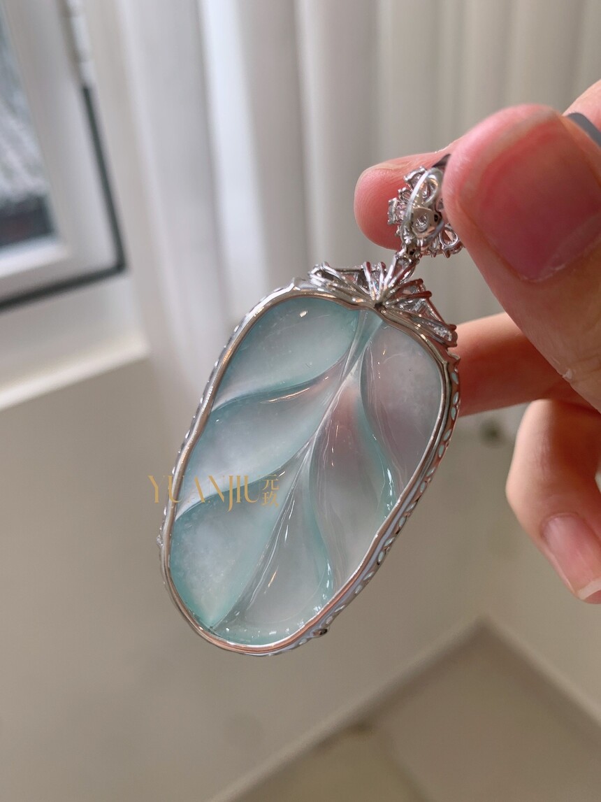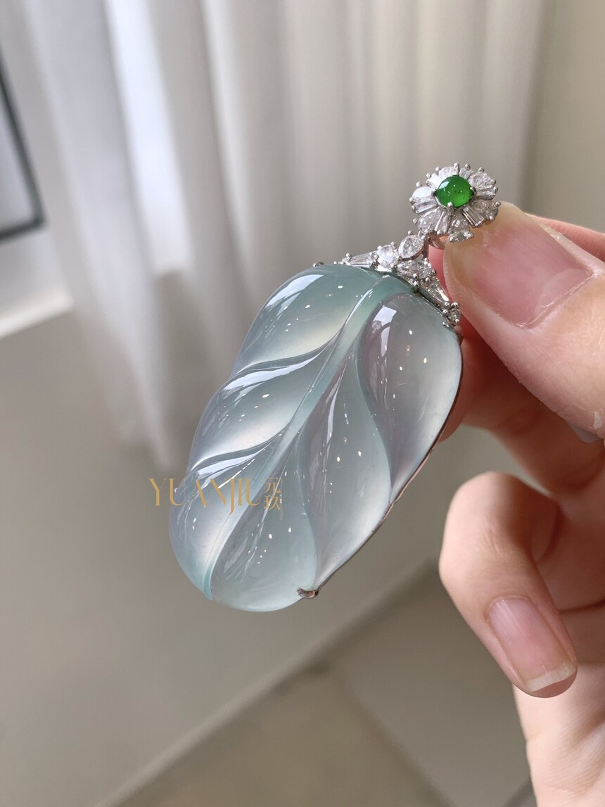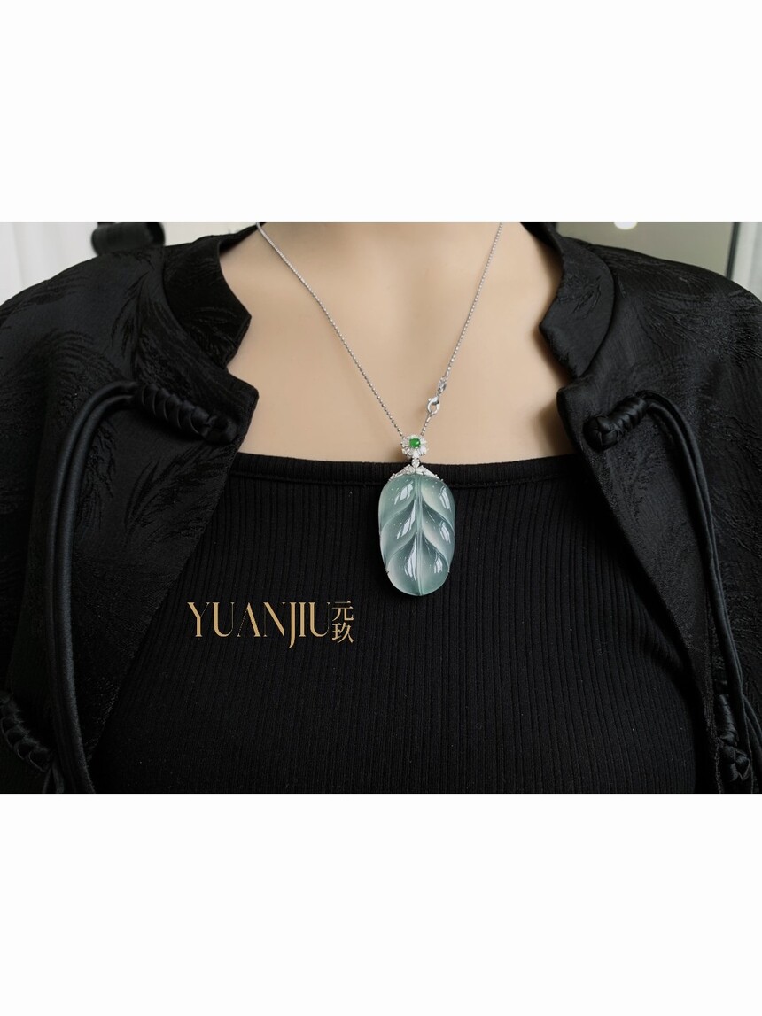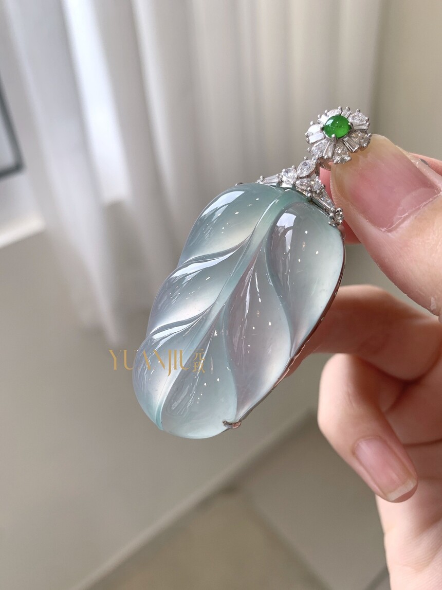 【高冰晴底叶子吊坠】【167357/87KTLPB】