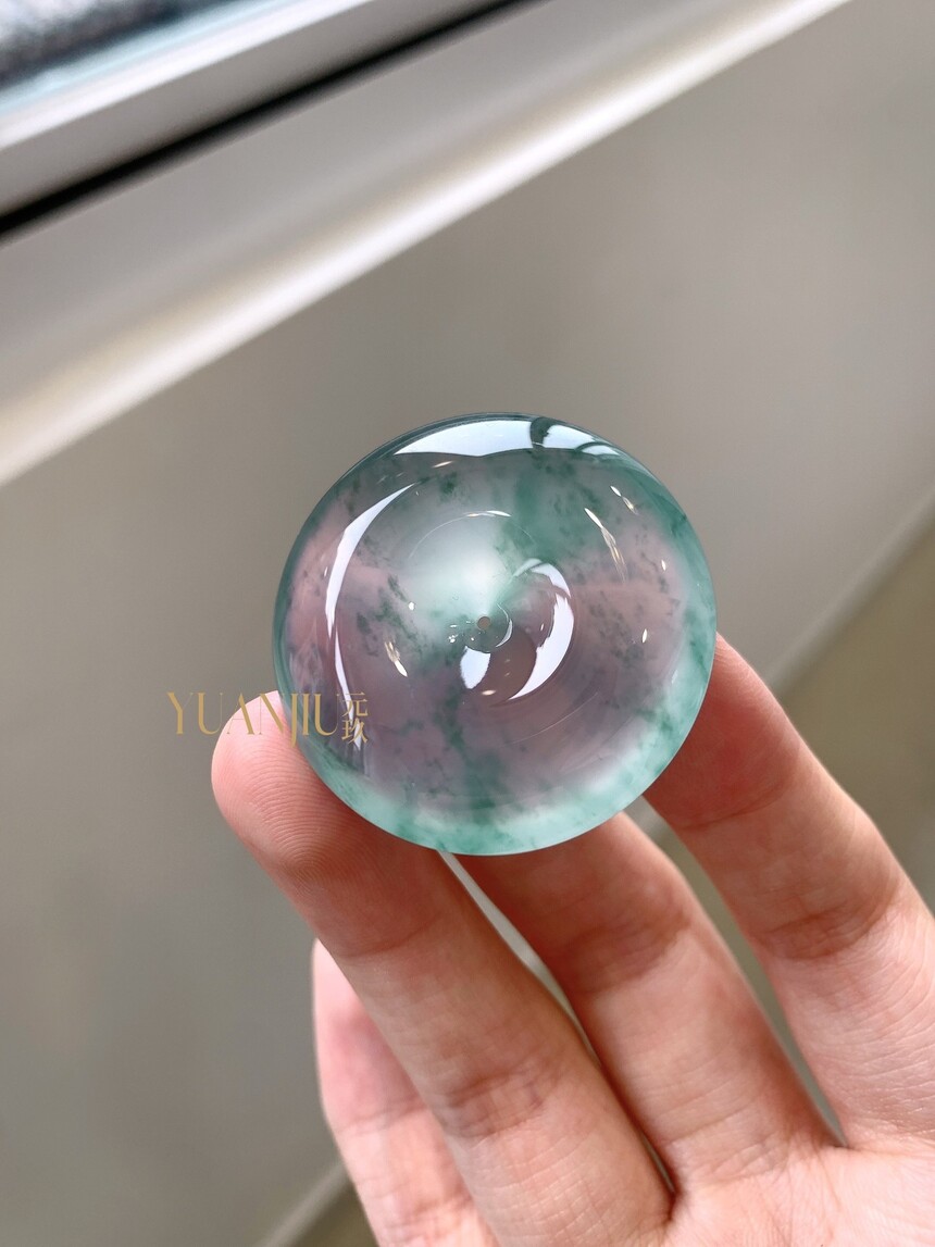 【玻璃种厚装飘花平安扣】【168285/48LTD】