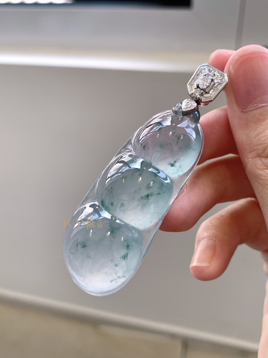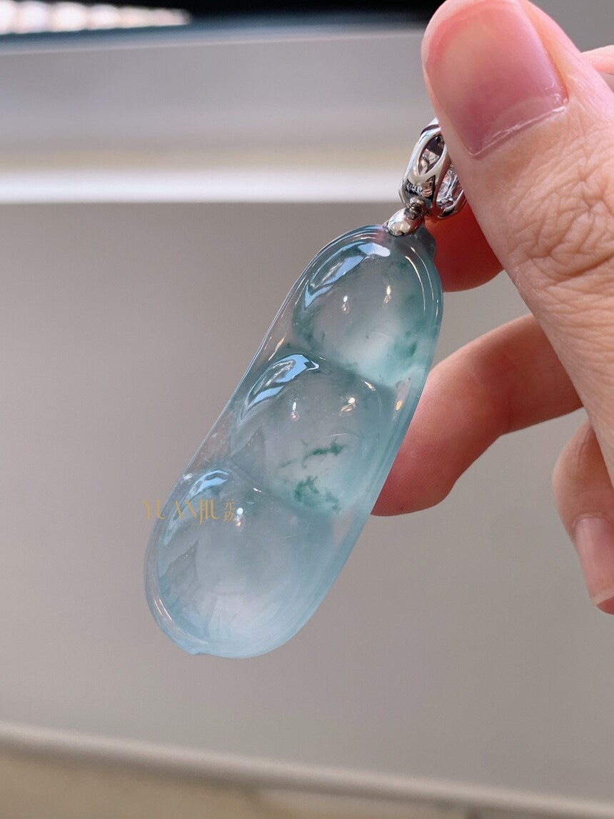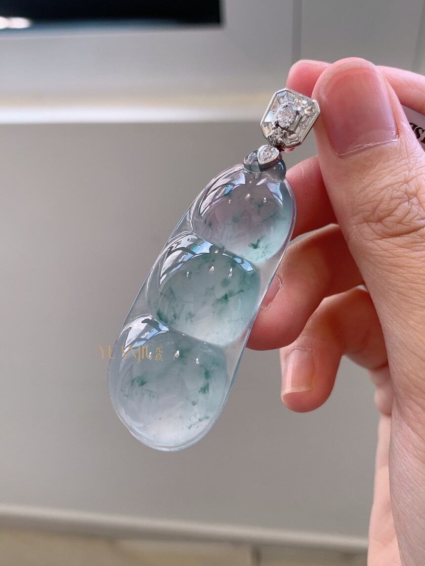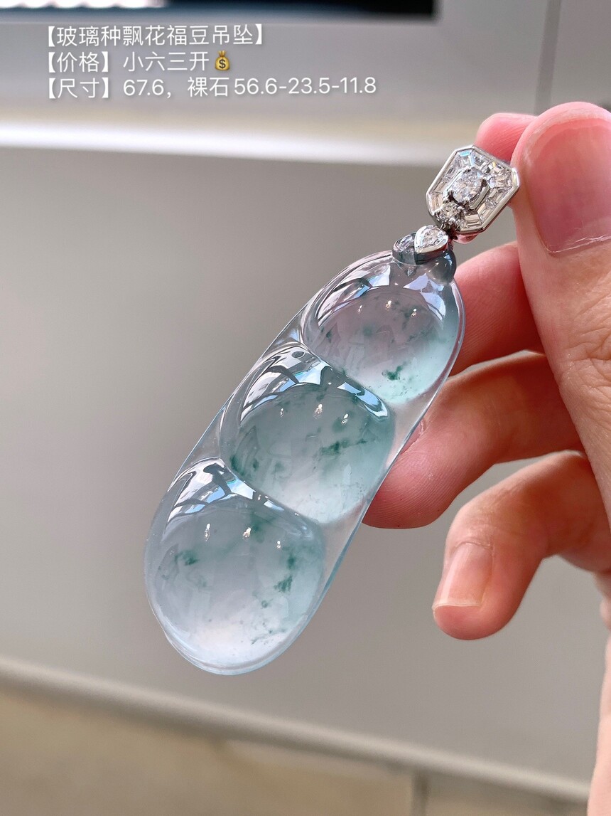 【玻璃种飘花福豆吊坠】【167957/4CHSD】