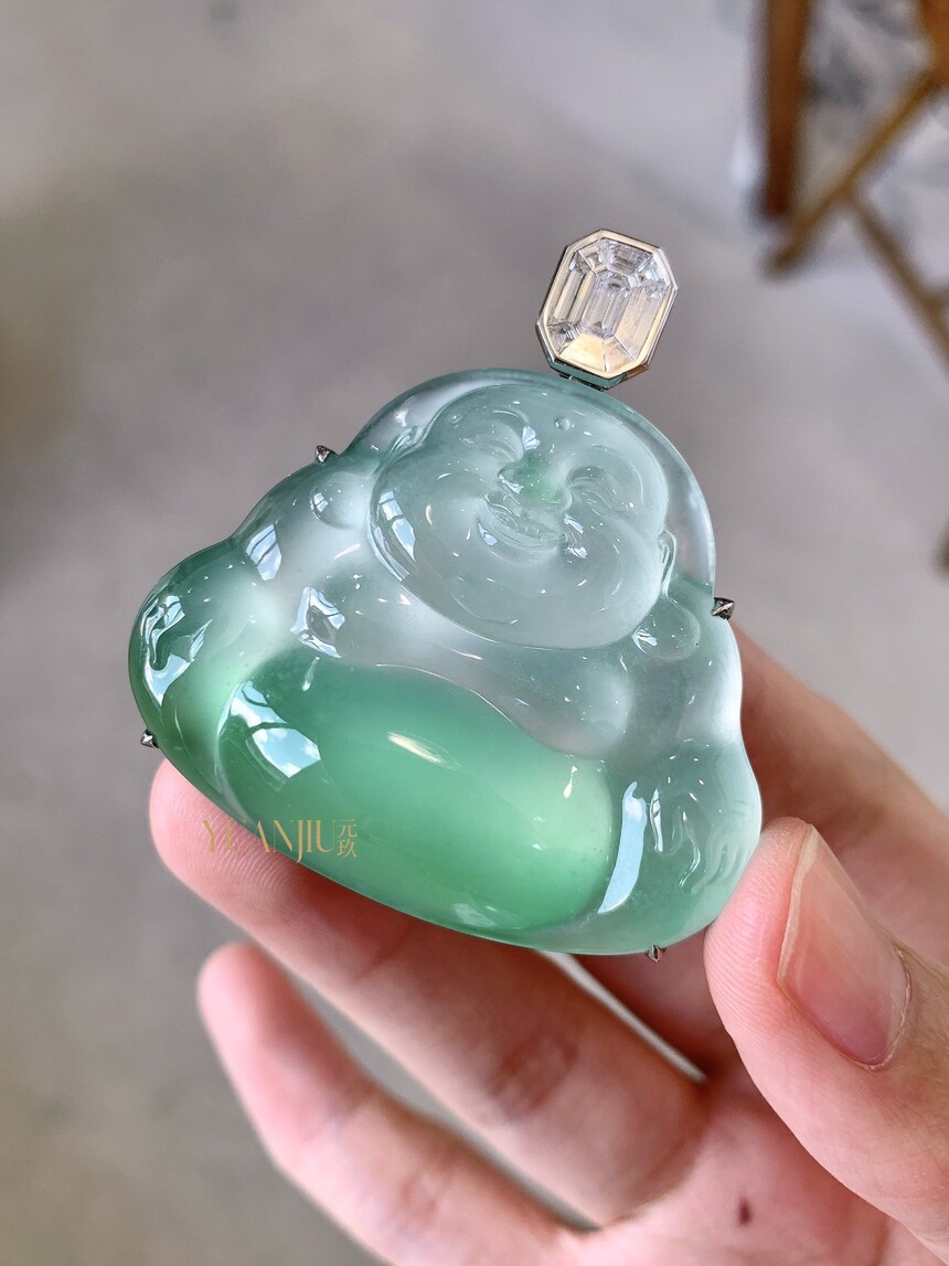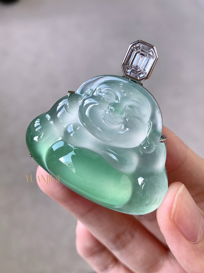 玻璃种甜绿佛公吊坠