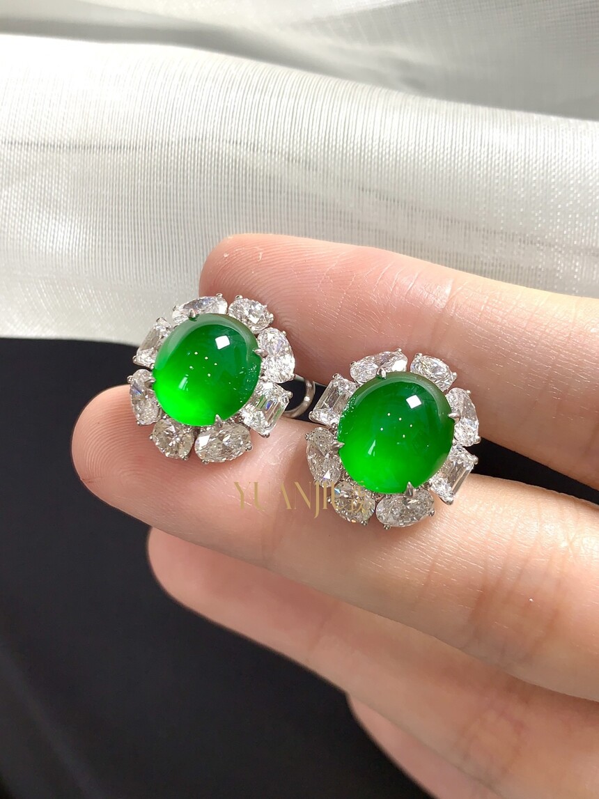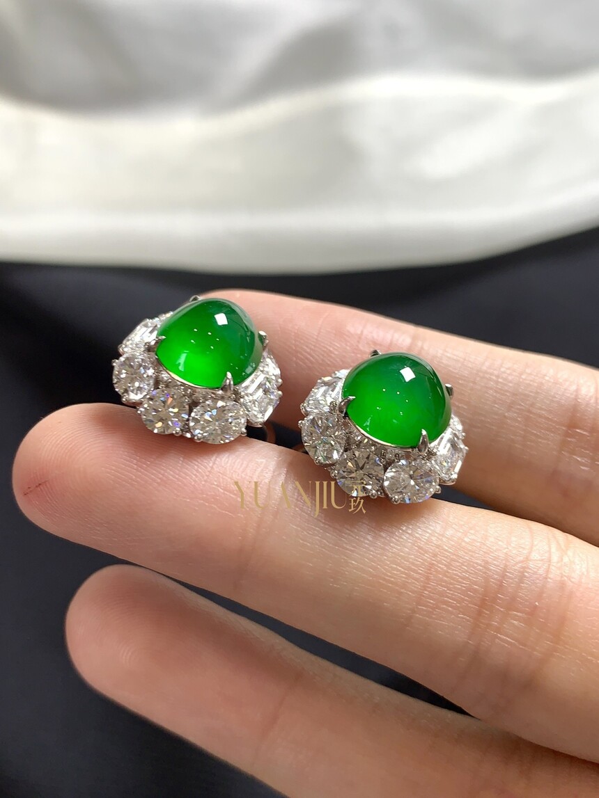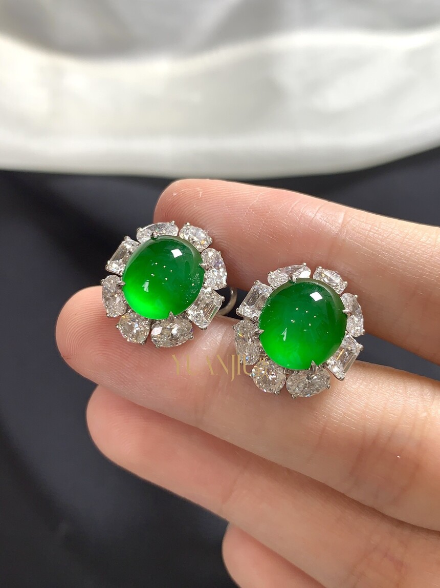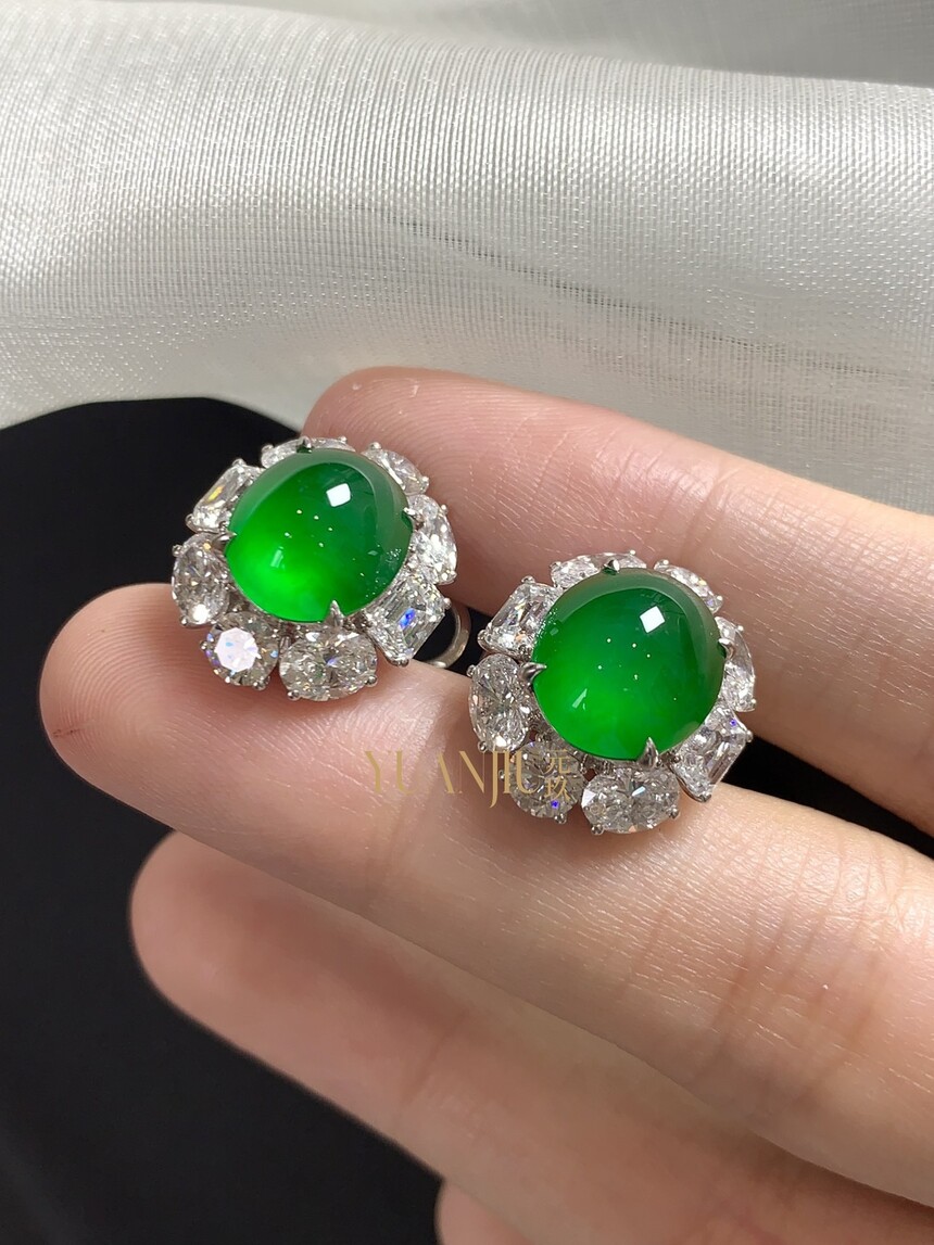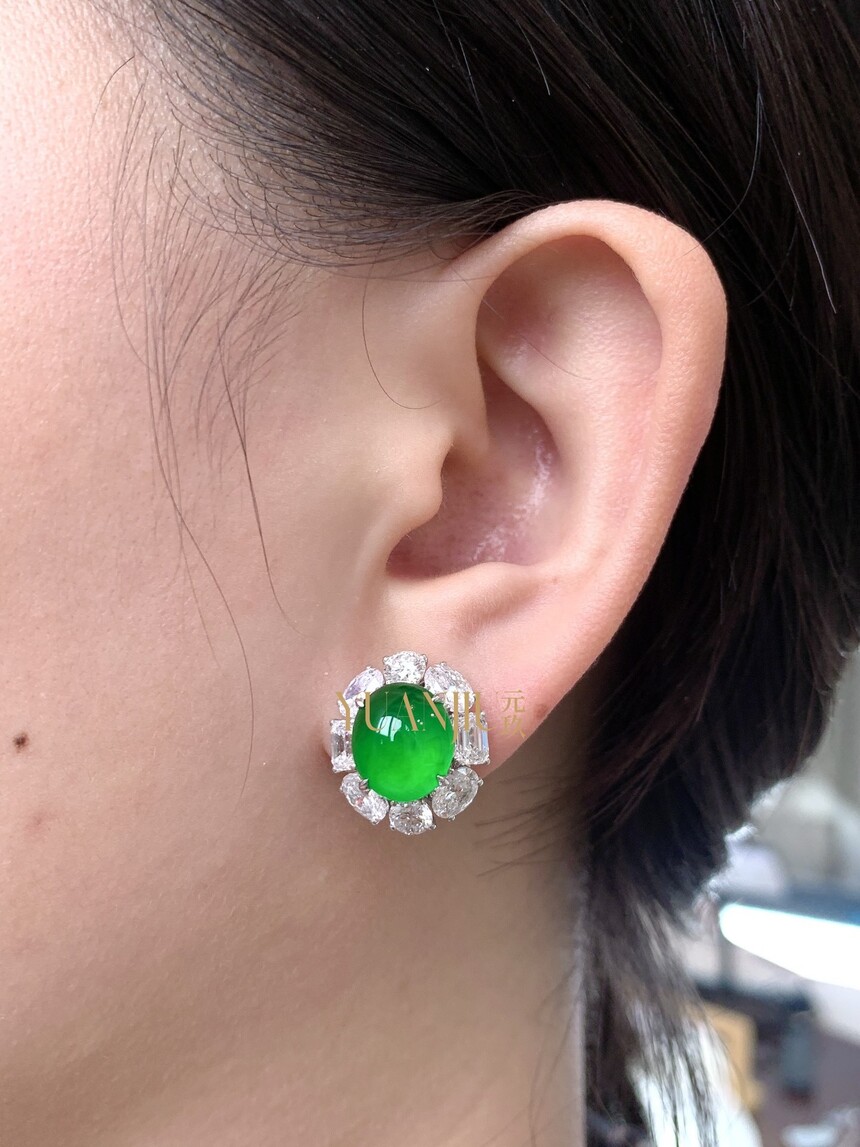 【收藏级高冰阳绿蛋面耳钉】【169130/52KSLD】
