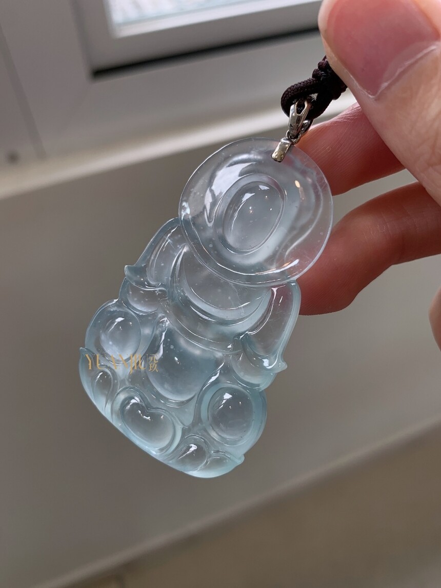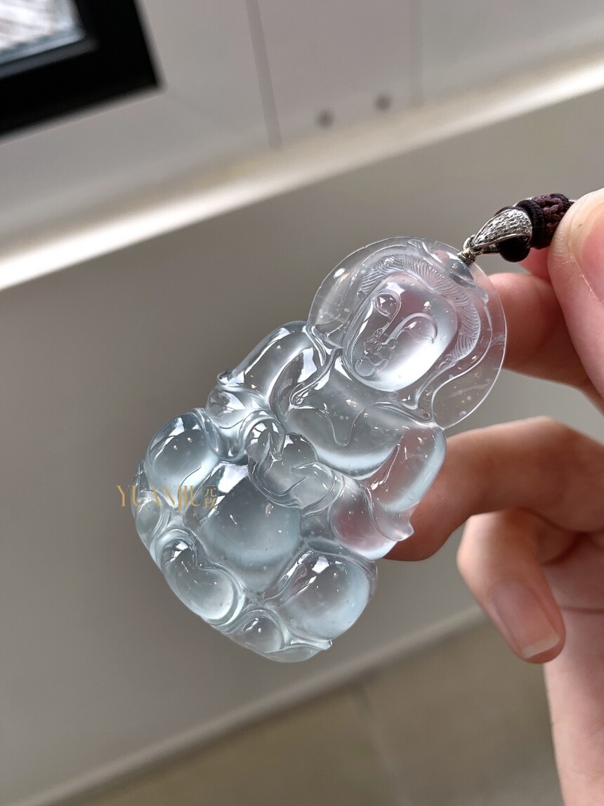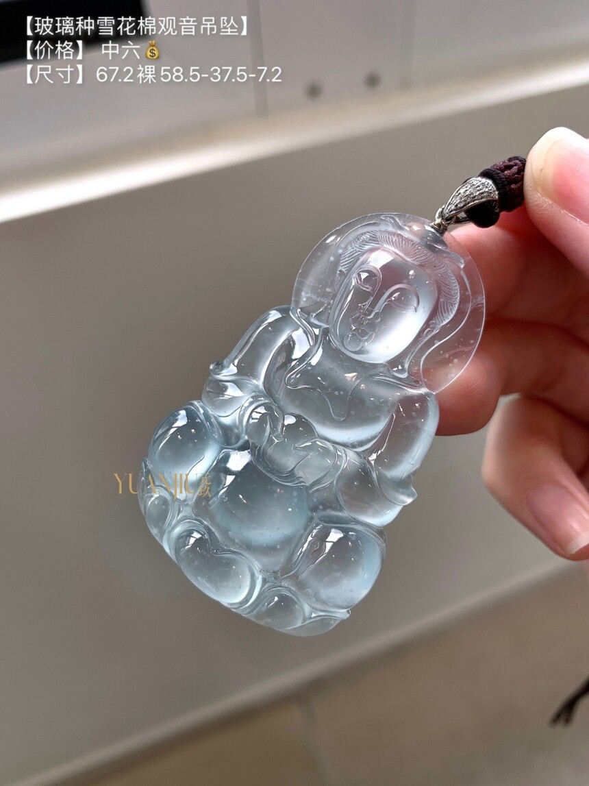 玻璃种雪花棉观音吊坠