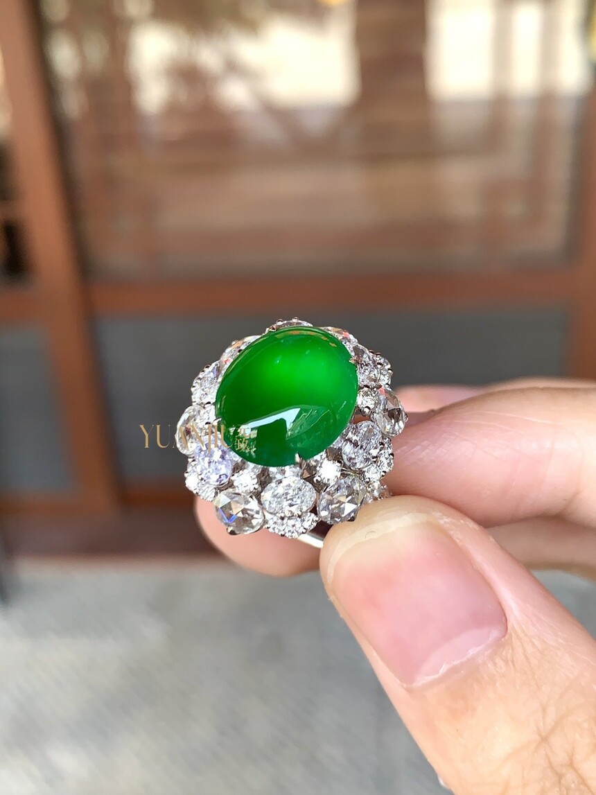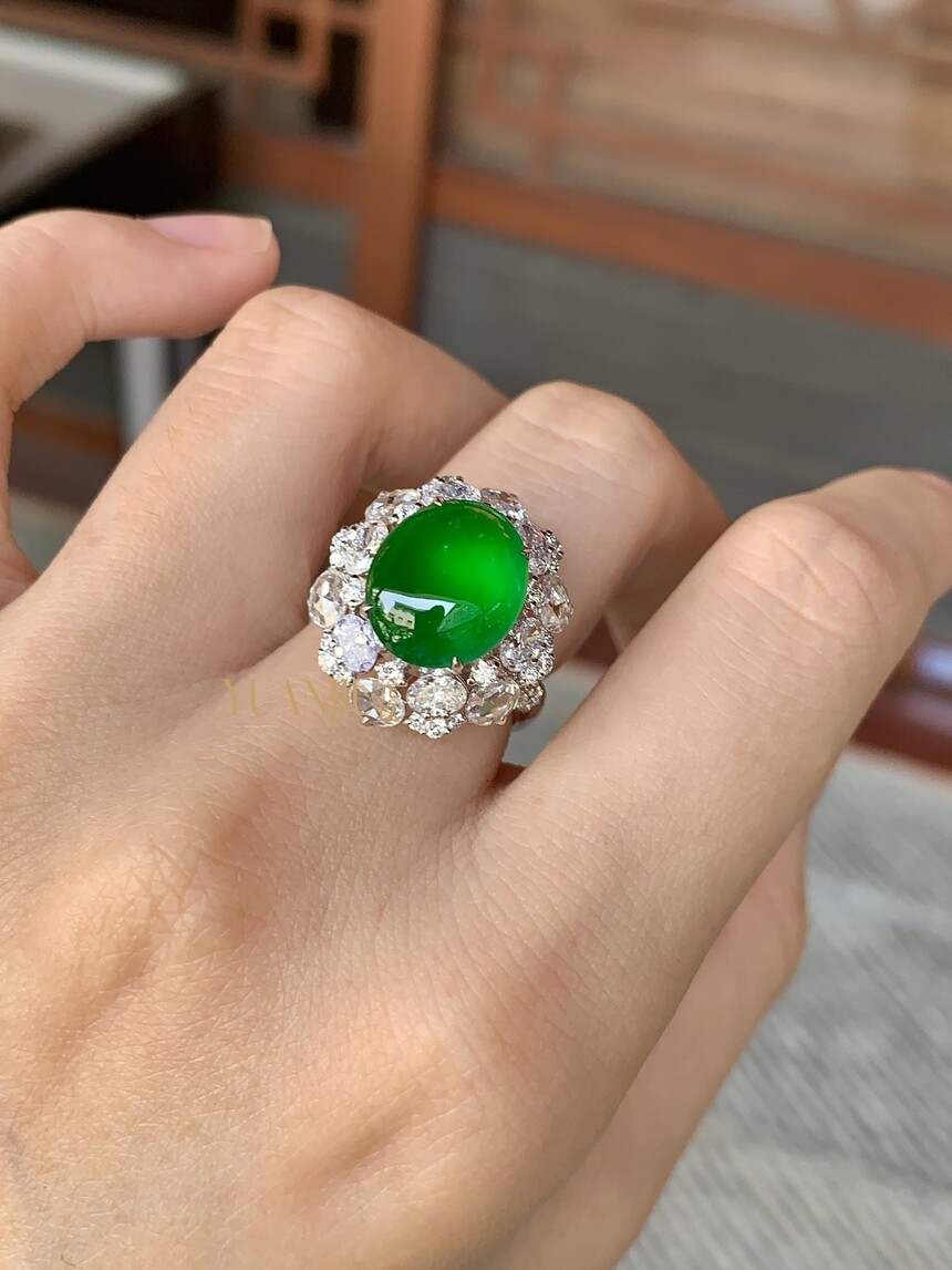 冰阳绿蛋面戒指