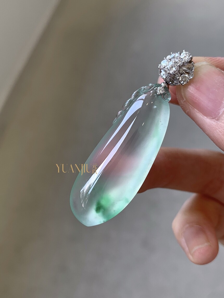 玻璃种飘绿福瓜吊坠