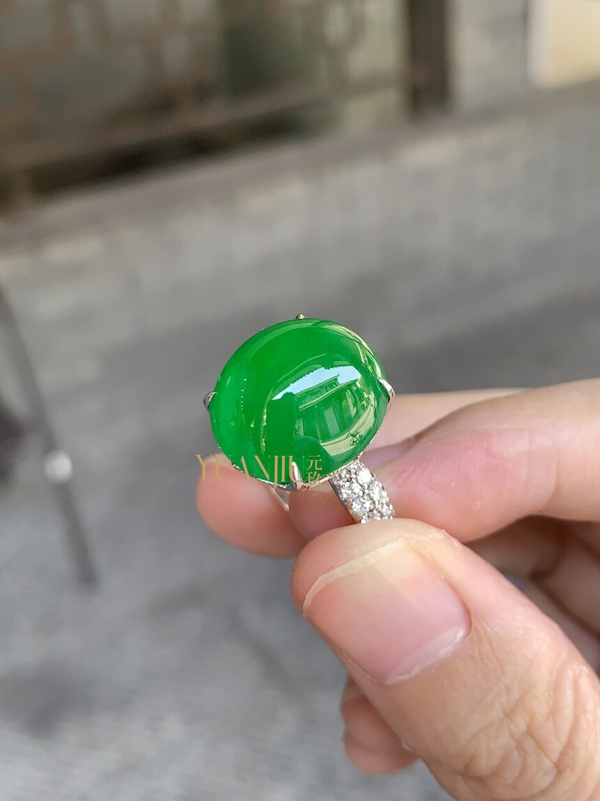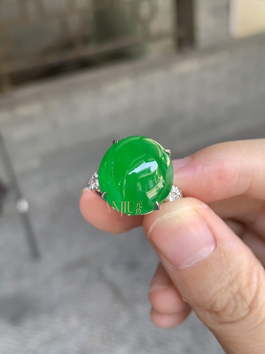【辣阳绿蛋面戒指】【169468/FBKSLD】