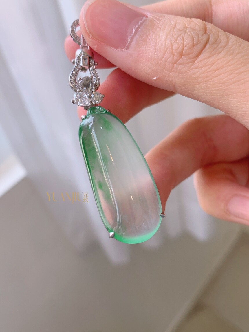 【玻璃种飘绿福瓜吊坠】【169517/5CHLNC】