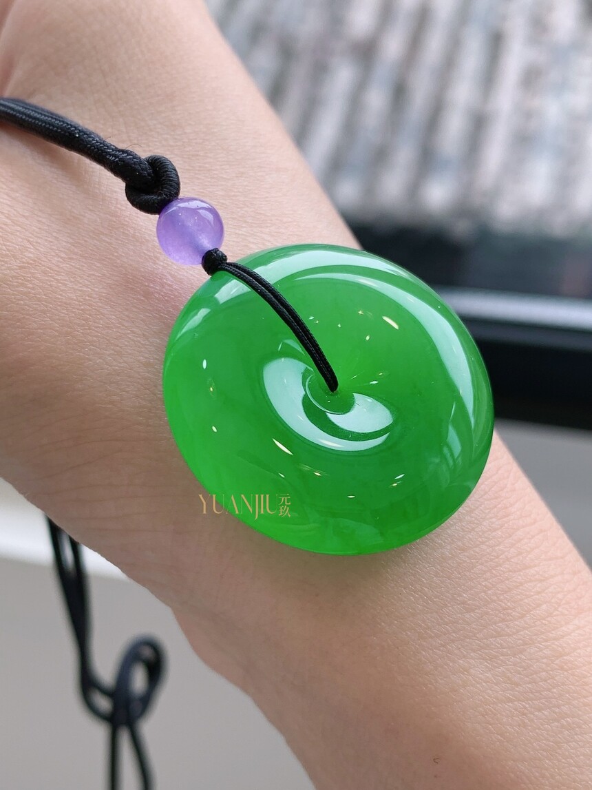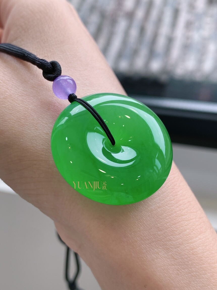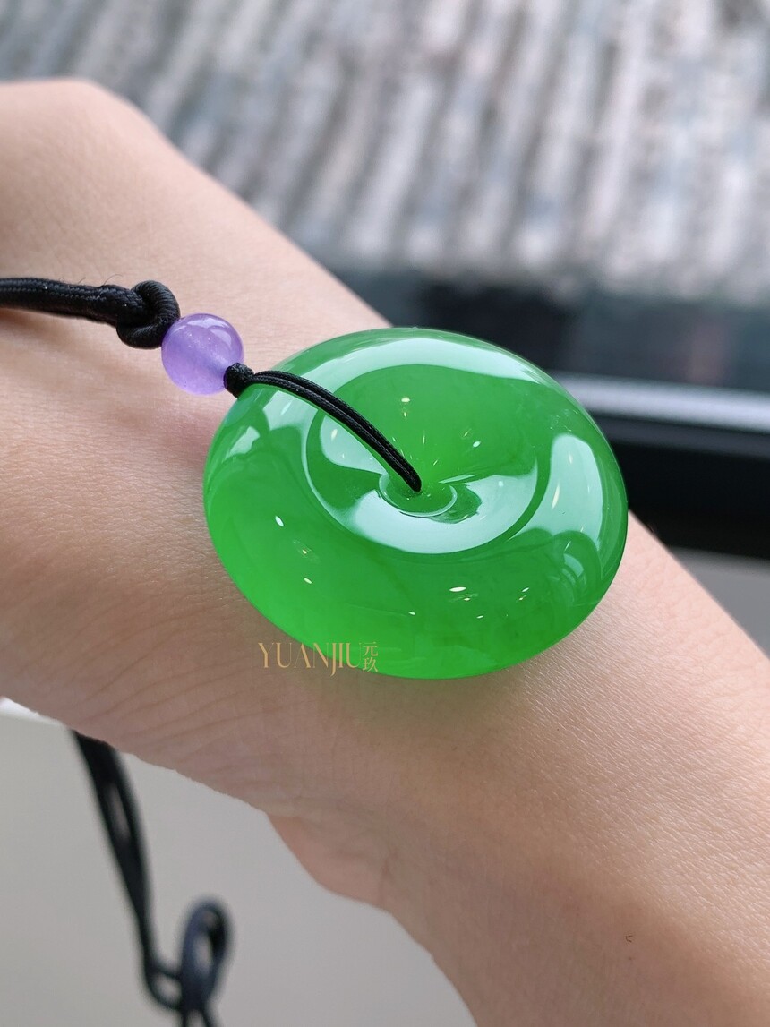 收藏级高冰阳绿平安扣吊坠