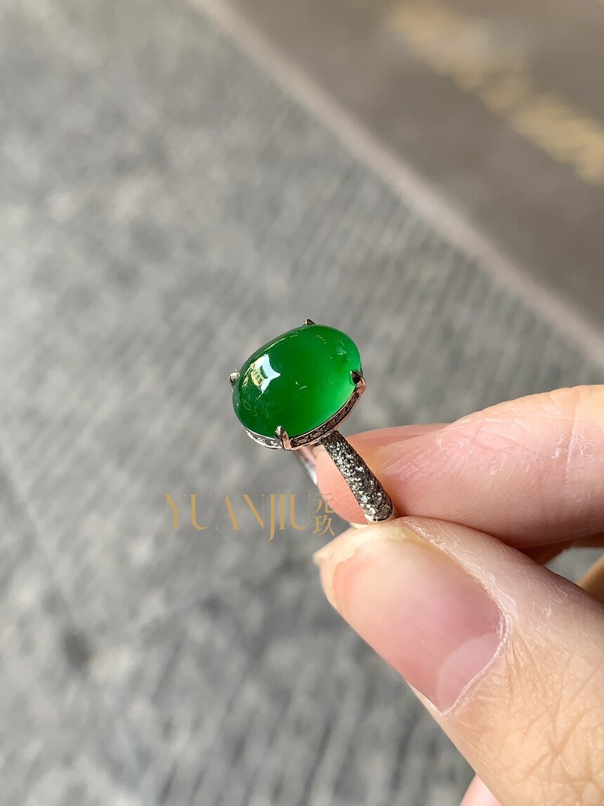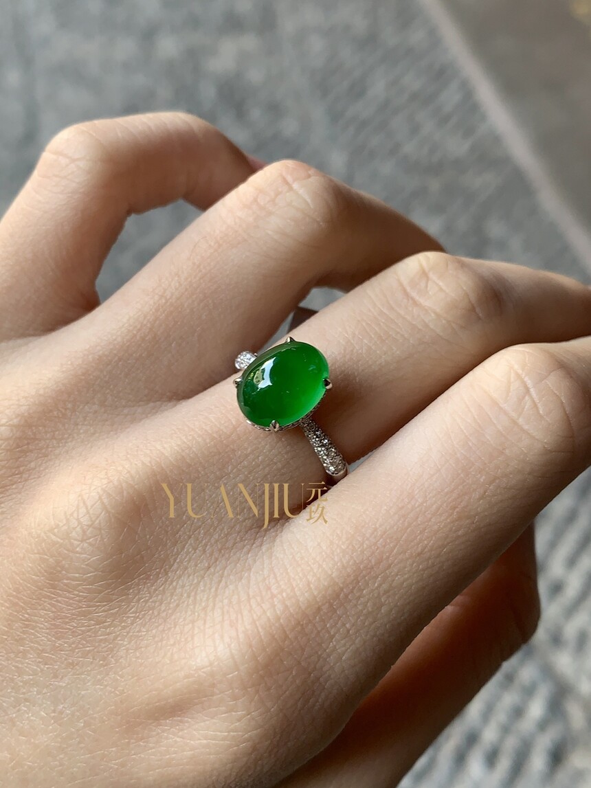 【冰阳绿蛋面戒指】【128743/49KNHC】